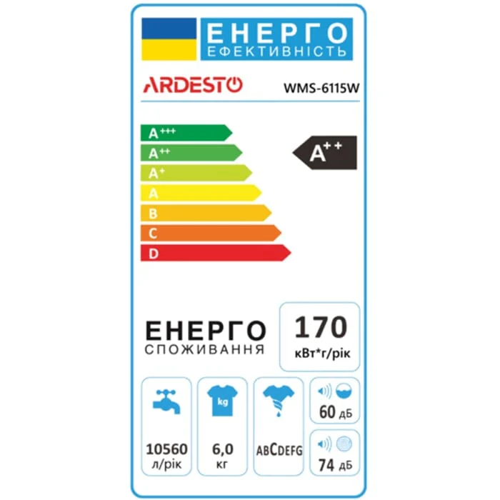 სარეცხი მანქანა 6კგ Ardesto WMS-6115W