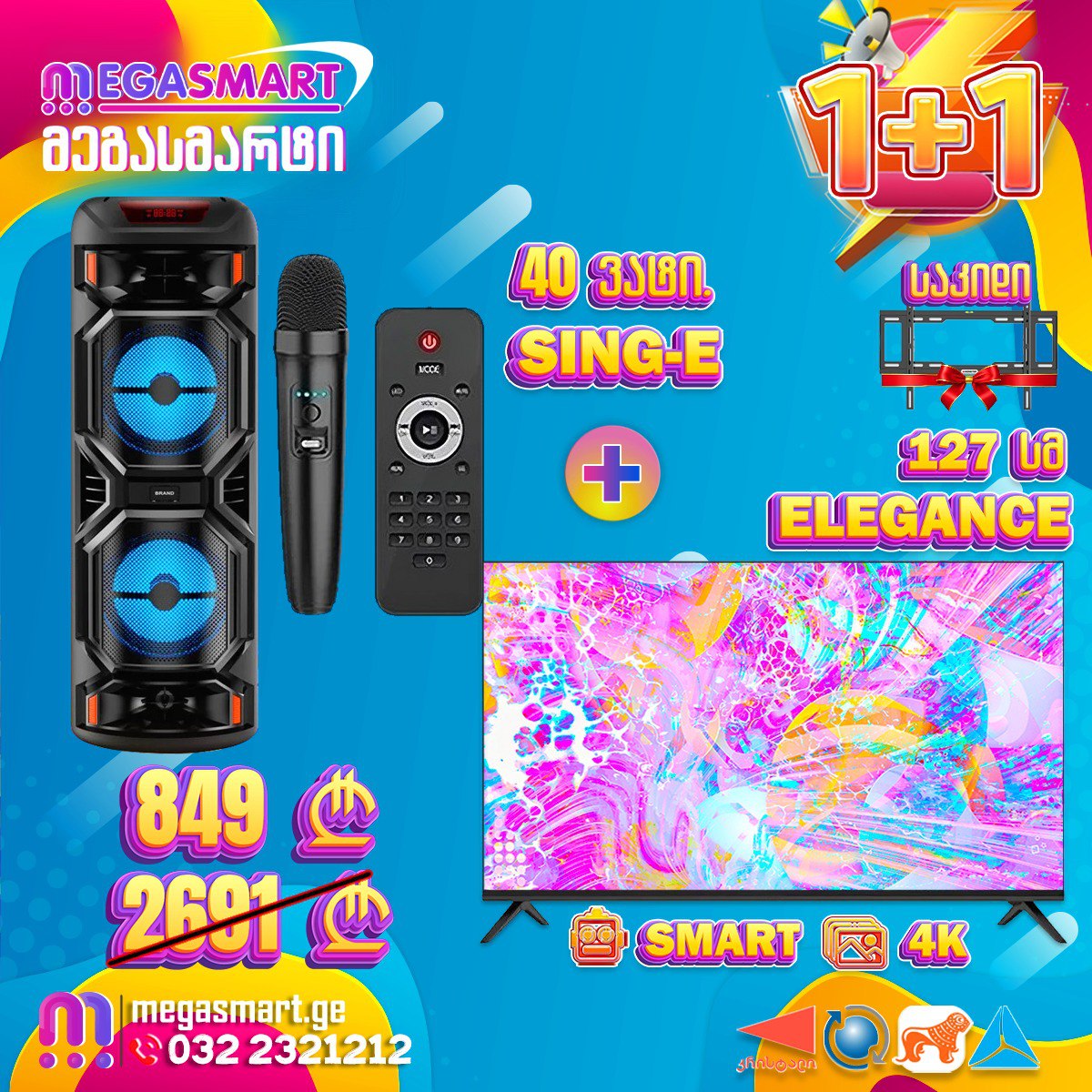 ტელევიზორი 127სმ ELEGANCE 50KV77S სმარტი 4K ანდროიდი საჩუქრად საკიდი და დინამიკი Sing-e ZQS8221