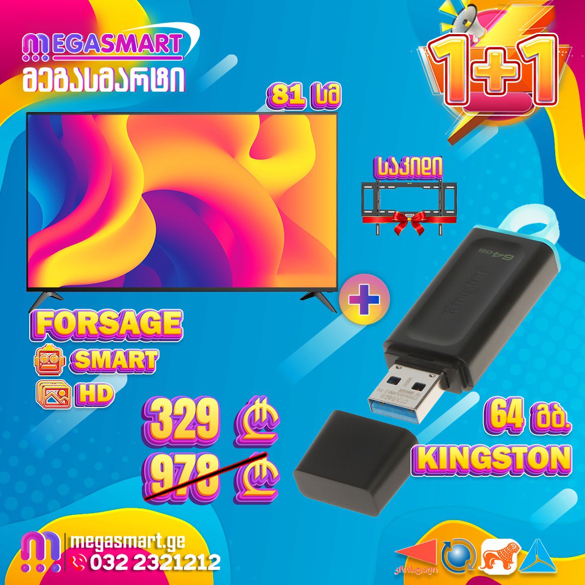 ტელევიზორი 81სმ Forsage 32T8 საკიდი საჩუქრად
