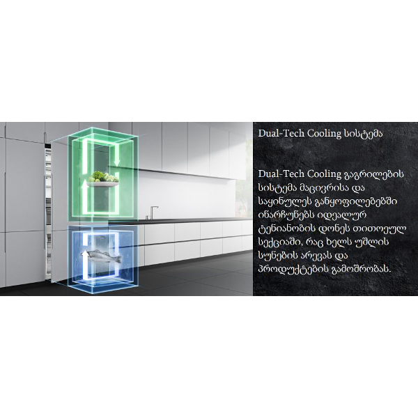ცალკე გაგრილების სისტემა მაცივრისა და საყინულეს განყოფილებებში ინარჩუნებს იდეალურ ტენიანობას და უშლის სუნების არევას.