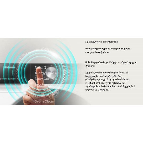 ძლიერი, მაღალსიჩქარიანი წყლის ნაკადი, რომელიც ღრმად აღწევს ქსოვილებში და ეფექტურად ხსნის სარეცხი საშუალებას