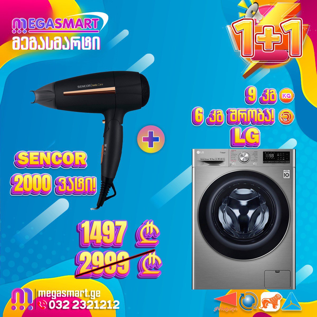 სარეცხი+საშრობი მანქანა 9კგ/6კგ LG F4V5VG2S საჩუქრად ფენი Sencor SSM SHD 7100BK