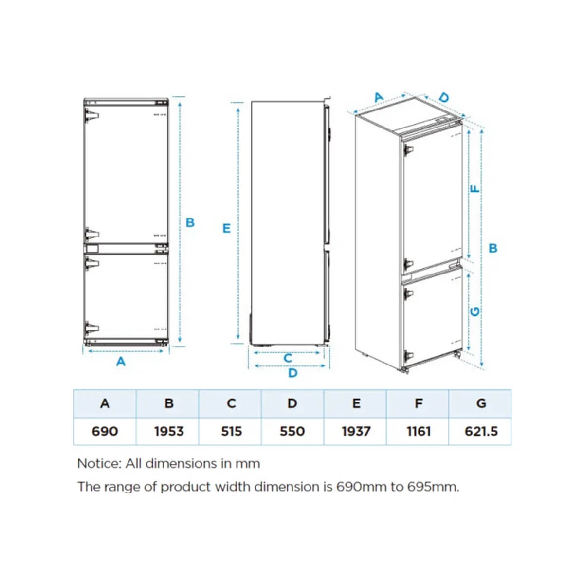 ჩასაშენებელი მაცივარი 194სმ Midea MDRE554FGD01