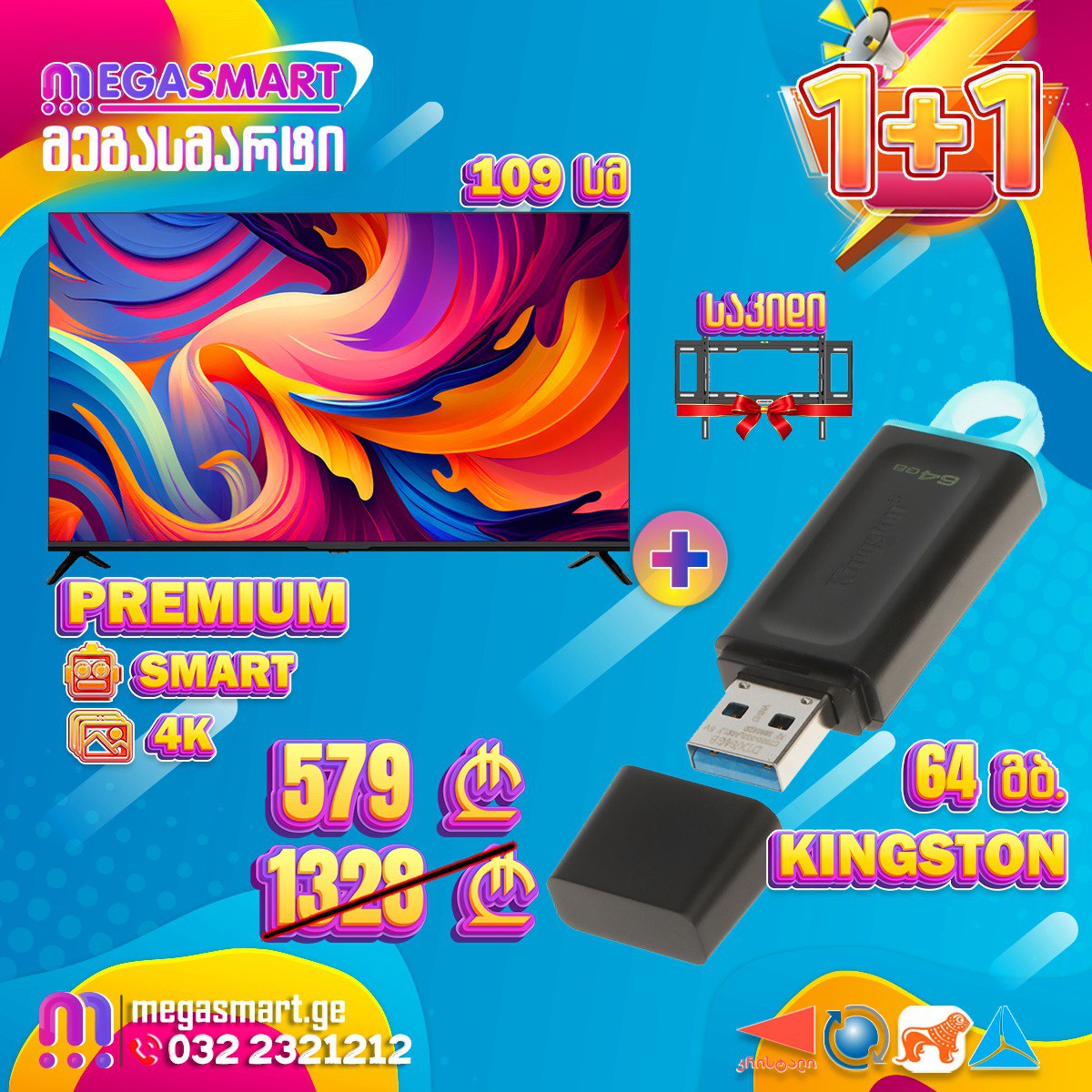 საჩუქრად კედელზე საკიდი და მეხსიერების ბარათი Kingston DTX/64GB