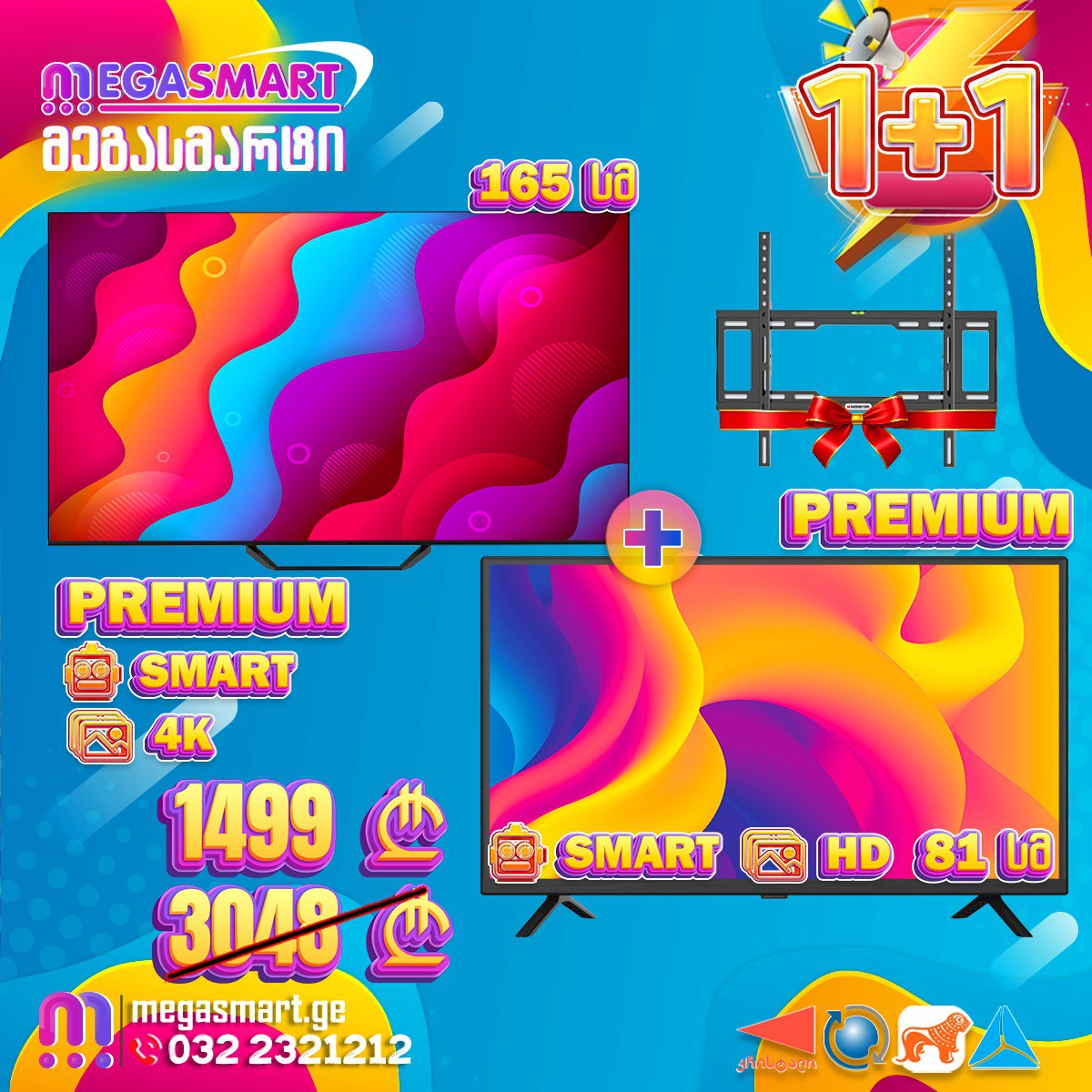 საჩუქრად კედელზე საკიდი და ტელევიზორი 81სმ Premium UDTV 32W5210 სმარტი ანდროიდი
